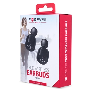 Med Forever True Wireless Earbuds TWE-100 slipper du irritation och trassel med kablar. Para med enkelhet ihop dina nya TWE-100 Earbuds trådlöst till din smartphone eller annan Bluetooth 4,2-aktiverad enhet och njut av din favoritmusik och besvara samtal när du är på resande fot. Du kommer att kunna lyssna på musik i 5 timmar utan problem.