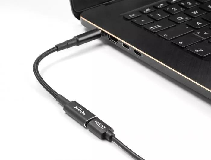 Med denna adapterkabel från Delock kan en USB Type-C™-kabel användas för att ladda en bärbar dator. Med USB Type-C™-kontakten kan vilken som helst USB-C™-laddningskabel användas för att ladda den bärbara datorn. Adapterkabeln är ett praktiskt tillägg för arbete på resande fot eftersom ingen specifik laddningskabel för bärbar dator behövs.