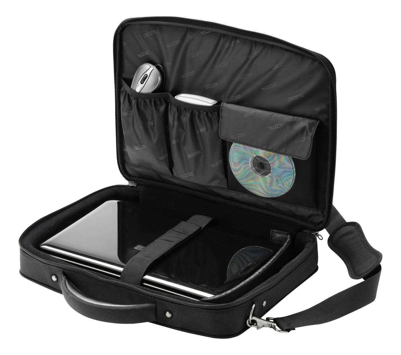 Mobile phone, pens, business cards and documents are always at hand in their designated holders in the front pocket. The workstation in the case interior, which features an additional zip pocket, as well as the open document compartment on the rear side offers storage room for mobile accessories. MultiCompact also has soft handles and cushioned shoulder strap for maximum comfort. The trolley belt lets you attach it securely to a trolley when traveling.