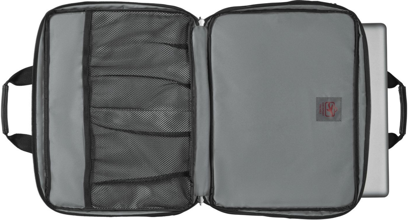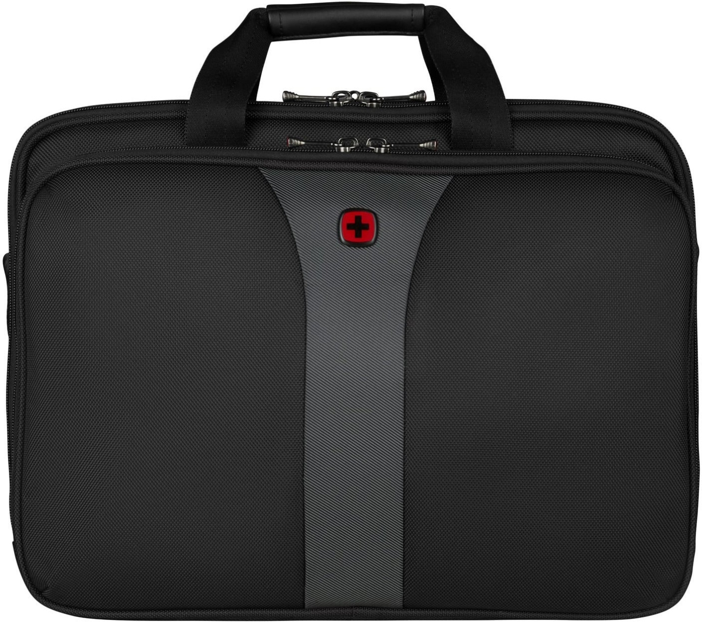 Wenger Legacy-väskan är en praktisk följeslagare för den flitiga pendlaren. I dess tre huvudfack ryms både en bärbar dator och dess tillbehör, anteckningsmaterial och andra nödvändiga arbetsredskap.