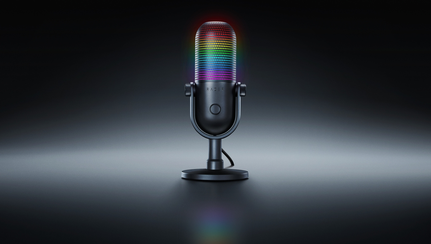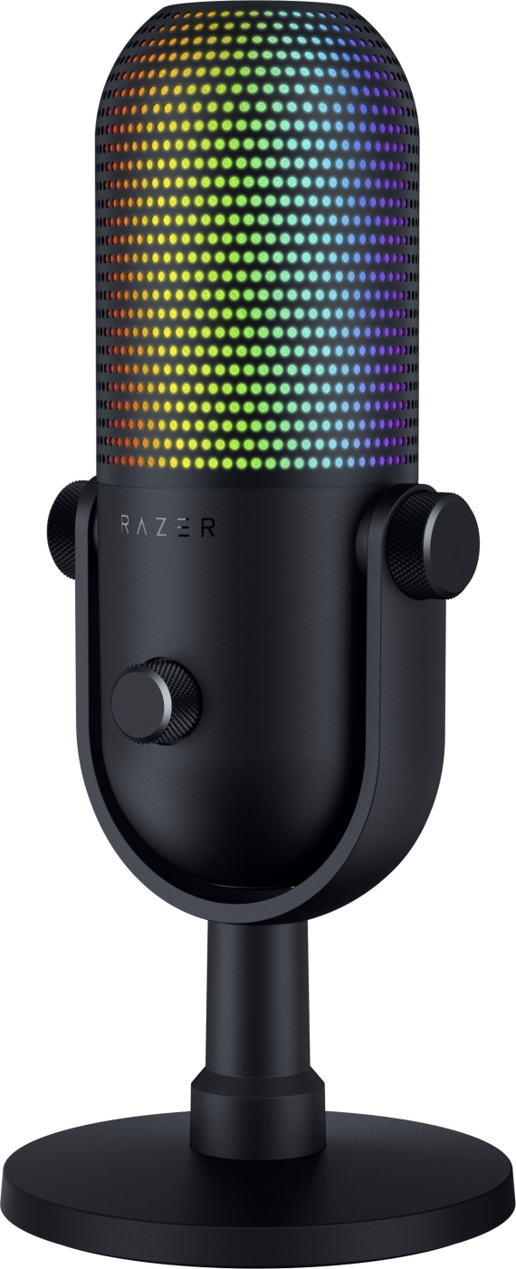 Razer Seiren V3 Chroma - professionell USB-mikrofon med RGB-ljusanpassning. Med stream-responsiv belysning och multifunktionell tryck för att stänga av-funktioner får du den kontroll, klarhet och elegans du behöver för spel, streaming och chatt.