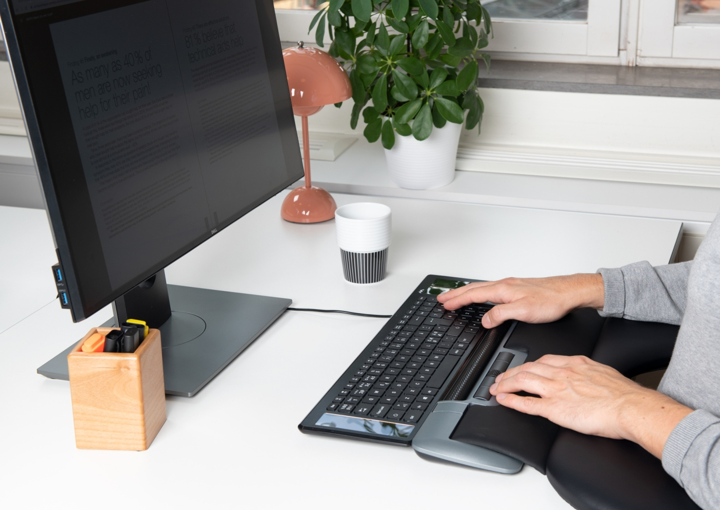 MouseTrapper Musen placeras framför tangentbordet, vilket ger en balanserad arbetsställning. Genom att placera musen framför tangentbordet hålls händerna nära kroppen och arbetet sker ergonomiskt på insidan av axellinjen. Att arbeta med musen inom axellinjen minskar den repetitiva utåtvridningen av överarmen och inåtvridningen av underarmen, som vanligtvis förekommer vid traditionellt musarbete och som på lång sikt kan orsaka belastningsskador. MouseTrapper -musens mjuka handledsstöd minskar trycket på nacke, axlar och armar.