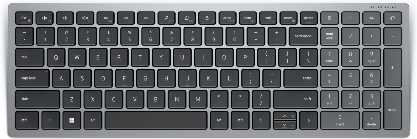 Dell KB740 är ett kompakt trådlöst tangentbord som är ett perfekt val om du letar efter ett ergonomiskt och mångsidigt tangentbord. Anslut till upp till tre olika enheter och arbeta smidigt mellan stationära datorer, bärbara datorer och andra enheter. Den enkla dubbla anslutningen gör det möjligt att para ihop och ansluta till nästan vilken dator som helst via trådlöst 2,4 GHz eller Bluetooth 5.0.
