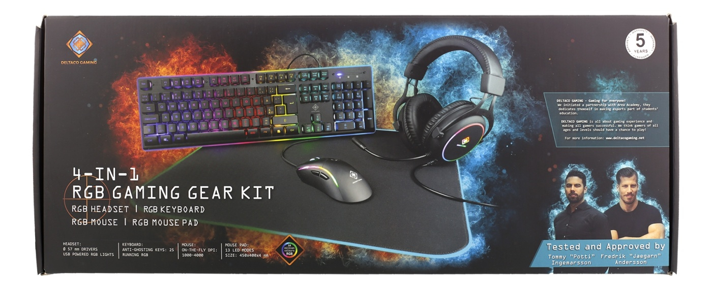 DELTACO GAMING 4-in-1 RGB Gaming Gear Kit, Headset/Tangentbord/Mus/Musmatta, svart/RGB