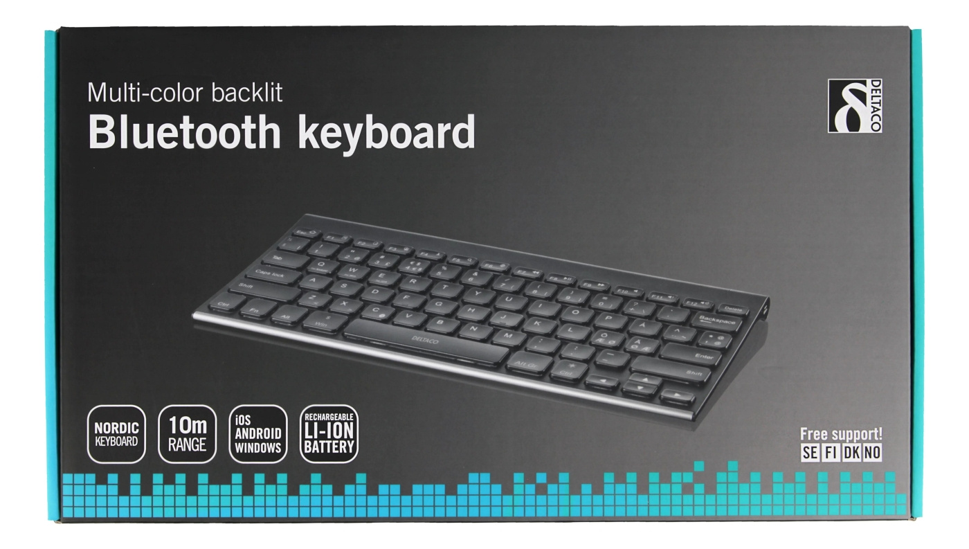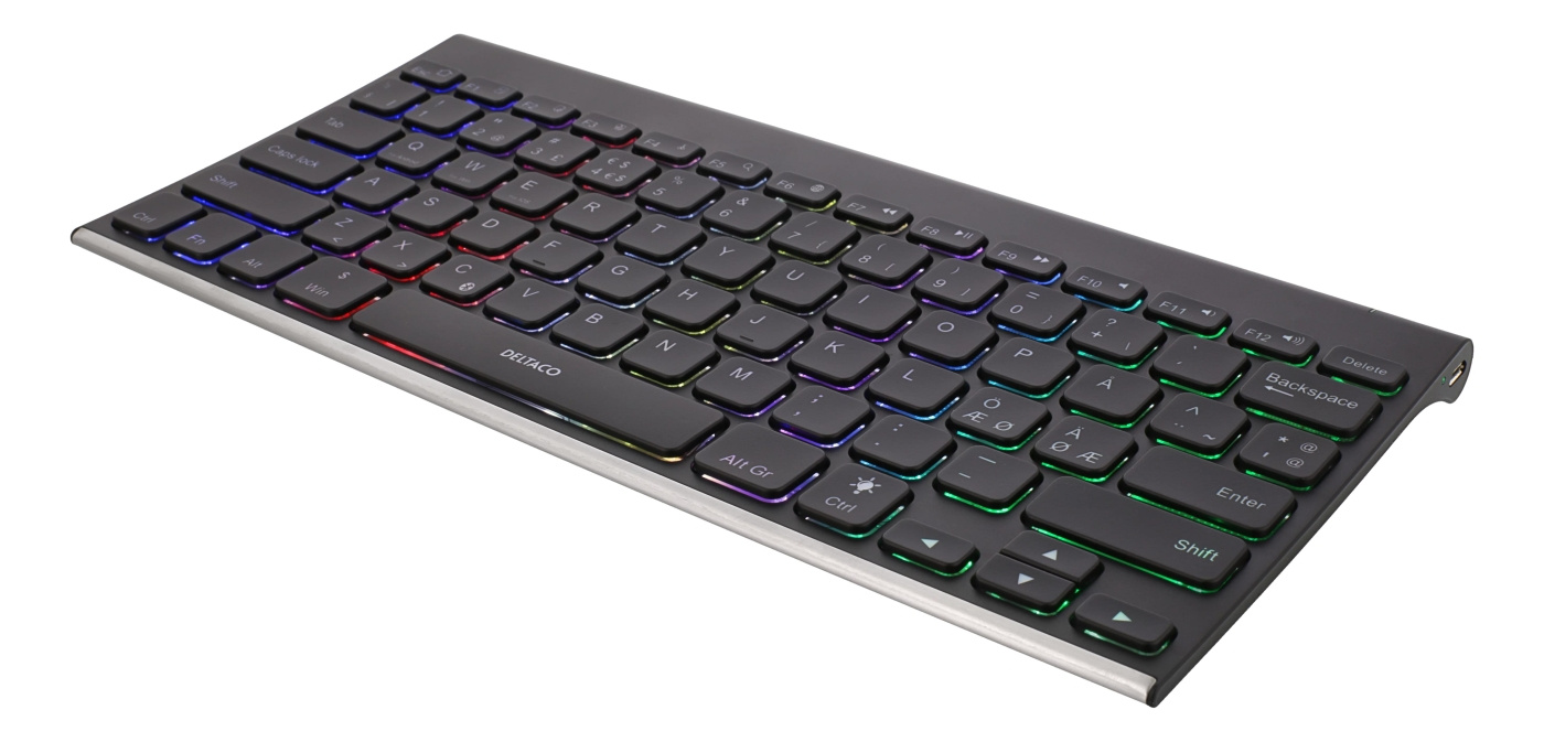 Tunt och smidigt tangentbord med bakrundsbelysta tangenter och trådlös kommunikation över Bluetooth. Bakrundsbelysningen kan väljas i 7 olika färger samt 2 olika ljusstyrkor per färg, det går också att stänga av bakrundsbelysningen helt om man önskar. Du kan enkelt välja vilket operativsystem tangentbordet ska användas till, välj mellan Windows, iOS eller Android för bästa funktionalitet.