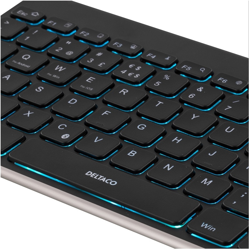 DELTACO trådlöst minitangentbord med dämpade tangenter, bakrundsbelyst, inbyggt batteri, Bluetooth, 10m, svart