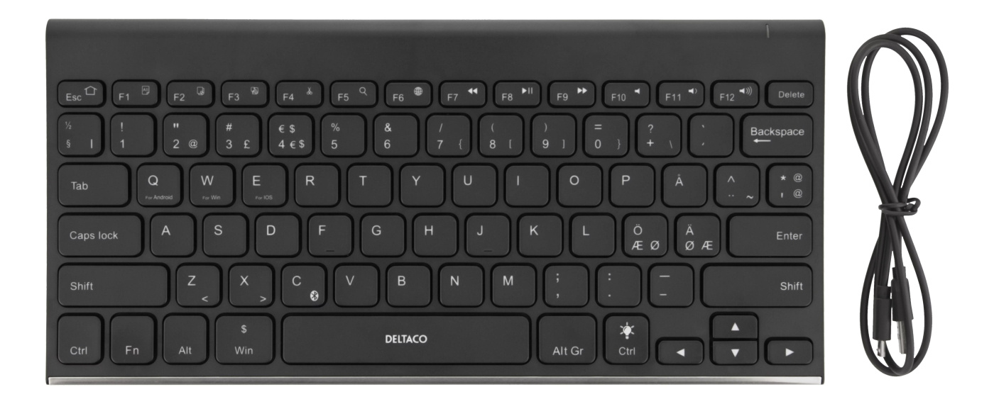 Förpackningen innehåller: Tangentbord, laddningskabel och manual