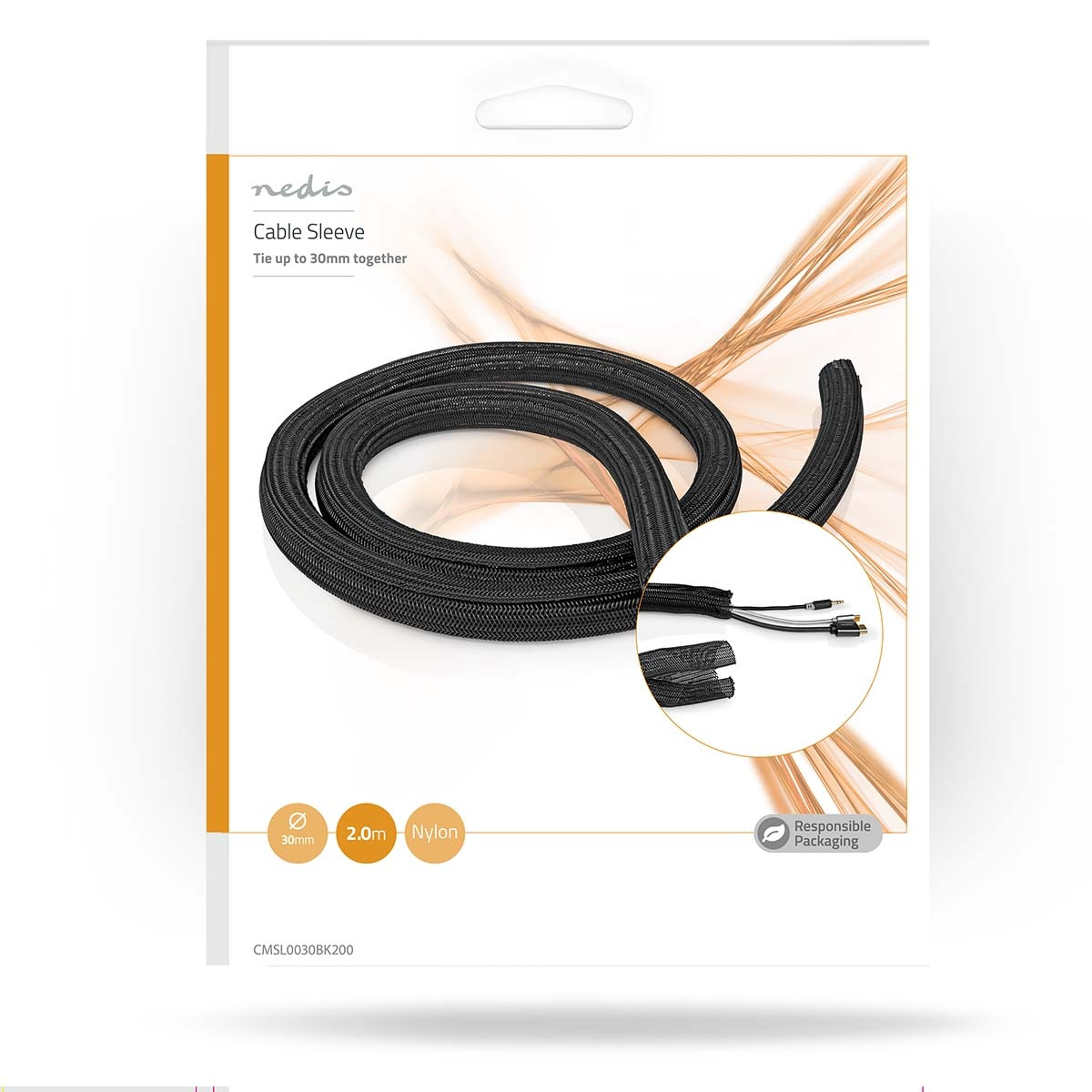 Nedis Kabelhantering | Ärm | 1 st. | Maximal kabeltjocklek: 30 mm | Nylon | Svart