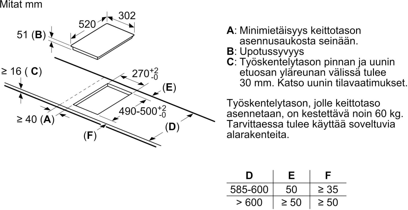 - Mått H x B x D (mm): 51 x 302 x 520