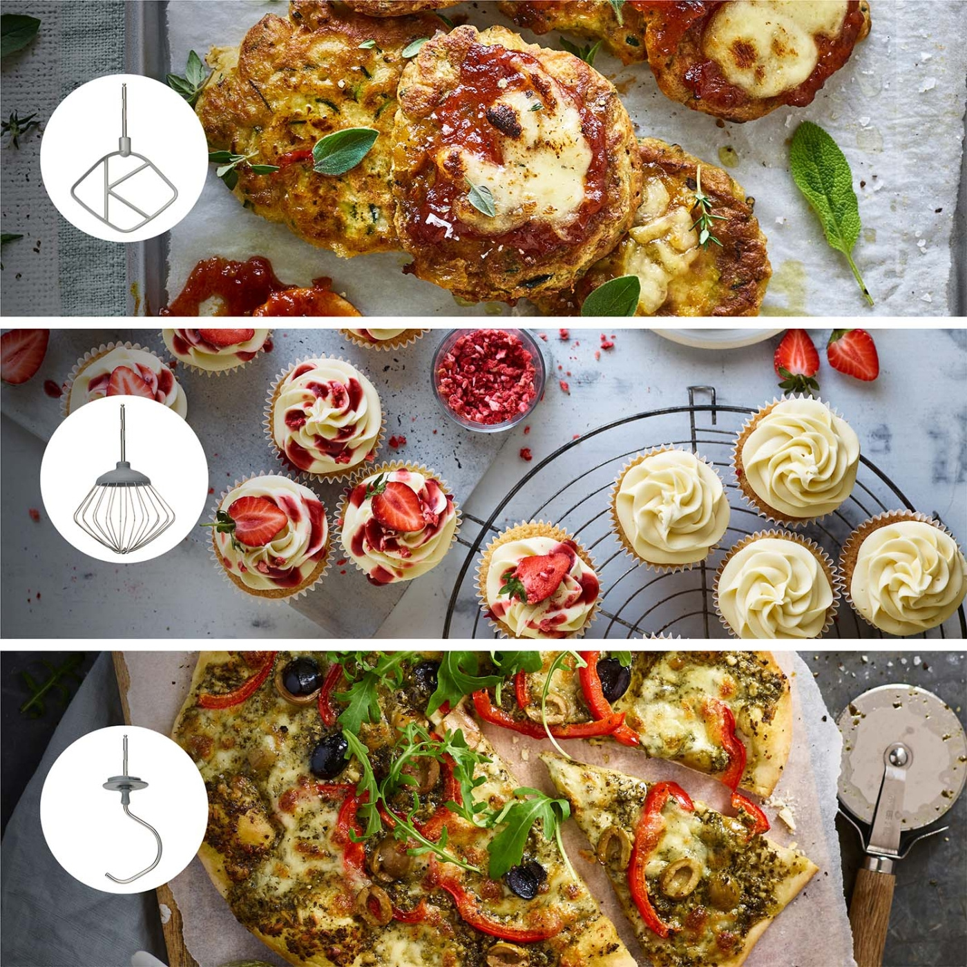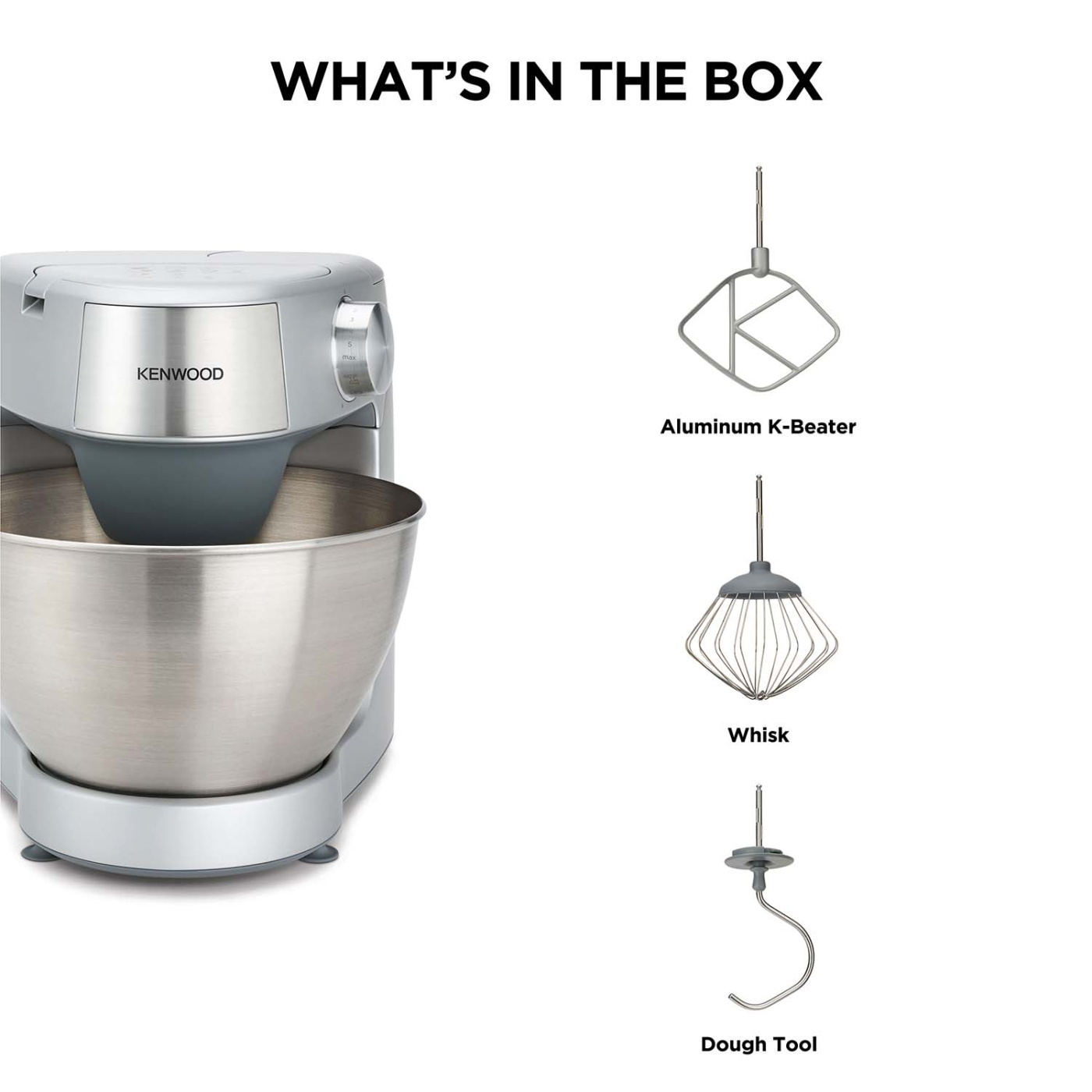 Prospero+ KHC29A.A0SI är mer än en vanlig köksmaskin. Den levereras med tre robusta verktyg: K-spade för smet och kakor, ballongvisp för luftiga blandningar och degkrok för bröd och pizzadeg.