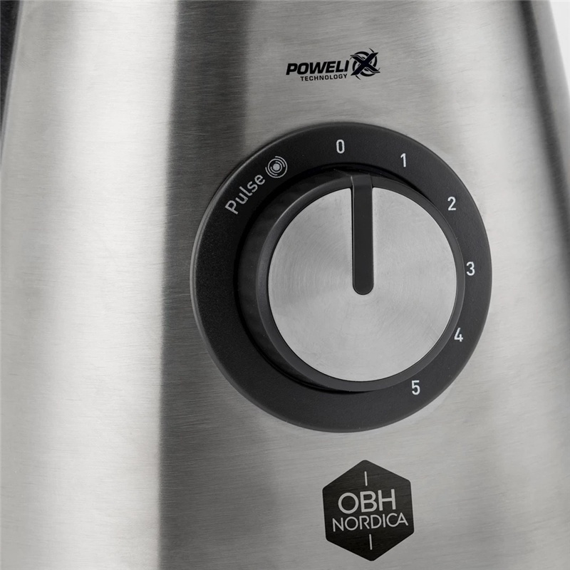 OBH Nordica LH439DS0 är en smoothieblender i rostfritt stål som mixar släta och krämiga smoothies på nolltid, tack vare Powelix tekniken. Den krossar även de hårdaste ingrediensarna enkelt, så som is och fryst frukt och bär. Blendforce Steels glasbehållare rymmer 1,25 L. Blendforce Steel är mycket lättanvänd med 5 hastighetslägen samt iskrossfunktion och mixar effektivt med kraftfull motor och 6 skarpa blad i rostfritt stål. Rengöringen är enkel tack vare avtagbart bladfäste. Blendforce Steel gör sig fin på köksbänken och står stadigt tack vare sugfötter och gör så klart smarriga smoothies.