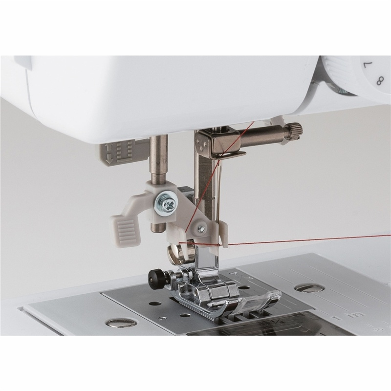 - Trykfötter: zigzagfot, knapphålsfot, knappisyningsfot, overlockfot, dragkedjefot, blindsömsfot och monogramsyningsfot