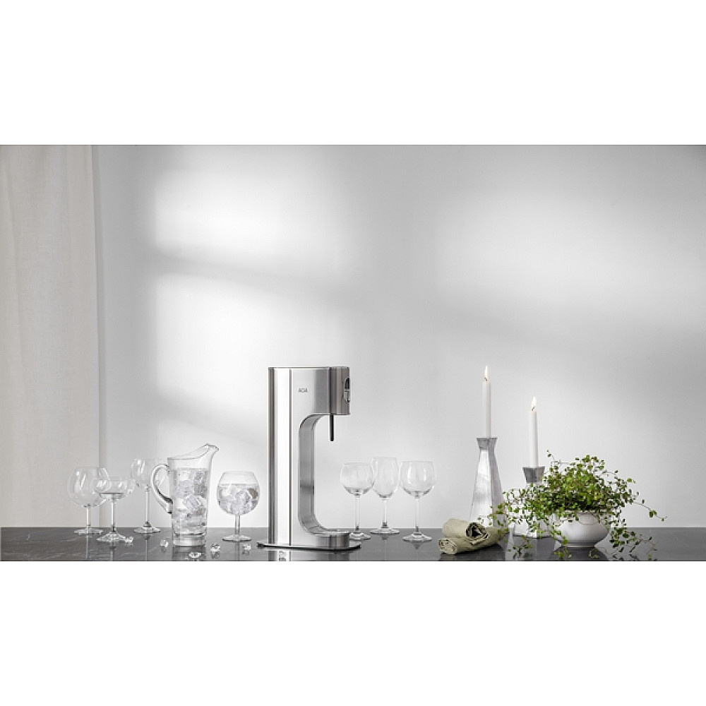 AGA Exclusive är en kolsyremaskin i toppkvalitet, tillverkad helt i rostfritt stål. Inga fingeravtryck tack vare den fläckbeständiga ytan. Maskinen är tyst och lättanvänd, med enkelt justerbar bubbelmängd.