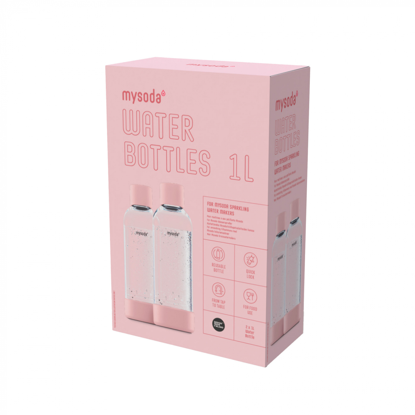 Mysoda PET-flaska 1L 2-pack, Rosa