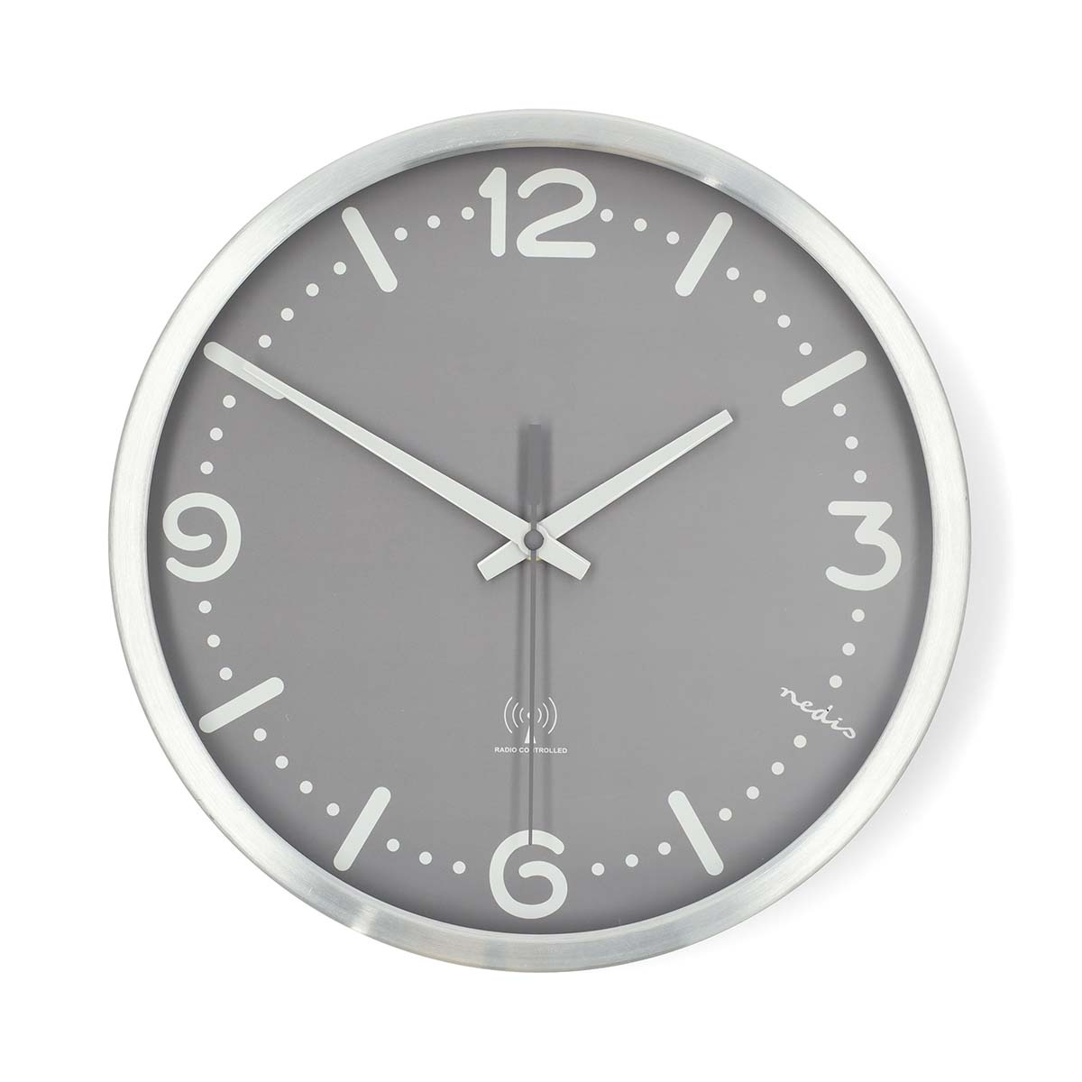 Klockan har en elegant ram i rostfritt stål och ger ett rent, professionellt utseende som passar in i många olika inredningsstilar. Den grå urtavlan har ett vitt index med hög kontrast bestående av siffror, ränder och prickar, vilket ger en utmärkt läsbarhet - även på avstånd.