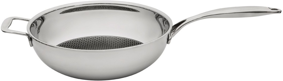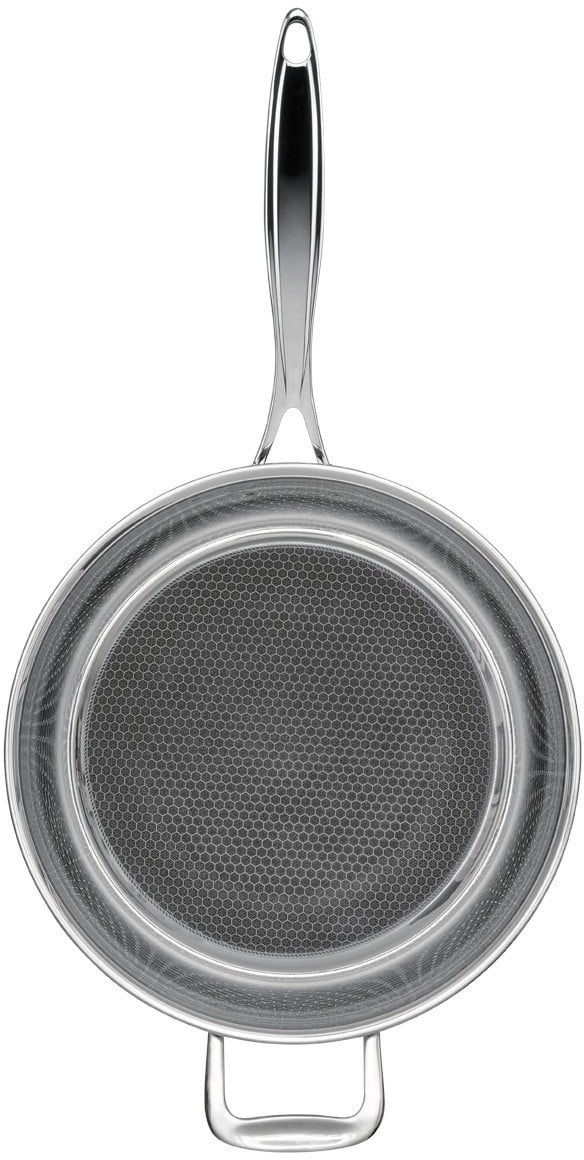 Den unika, patenterade bikakestrukturen i Steelsafe-stekpannan skyddar effektivt non-stick-beläggningen. Metallmönstret på stekytan ligger något ovanför den belagda delen av stekpannan, så att stekpannan inte kommer i kontakt med själva non-stick-beläggningen. Du kan därför använda metallkokkärl med fullständig sinnesfrid.