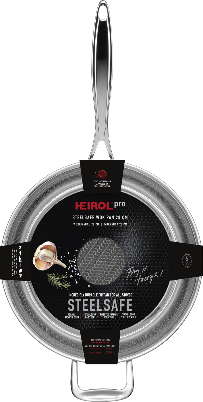 Heirol Pro Steelsafe-stekpannor kombinerar fördelarna med en obehandlad stålpanna och en non-stick-beläggning. Perfekta stekresultat och brynning på stålpannanivå för nästan alla ingredienser - utan att klibba fast på det som ska stekas!