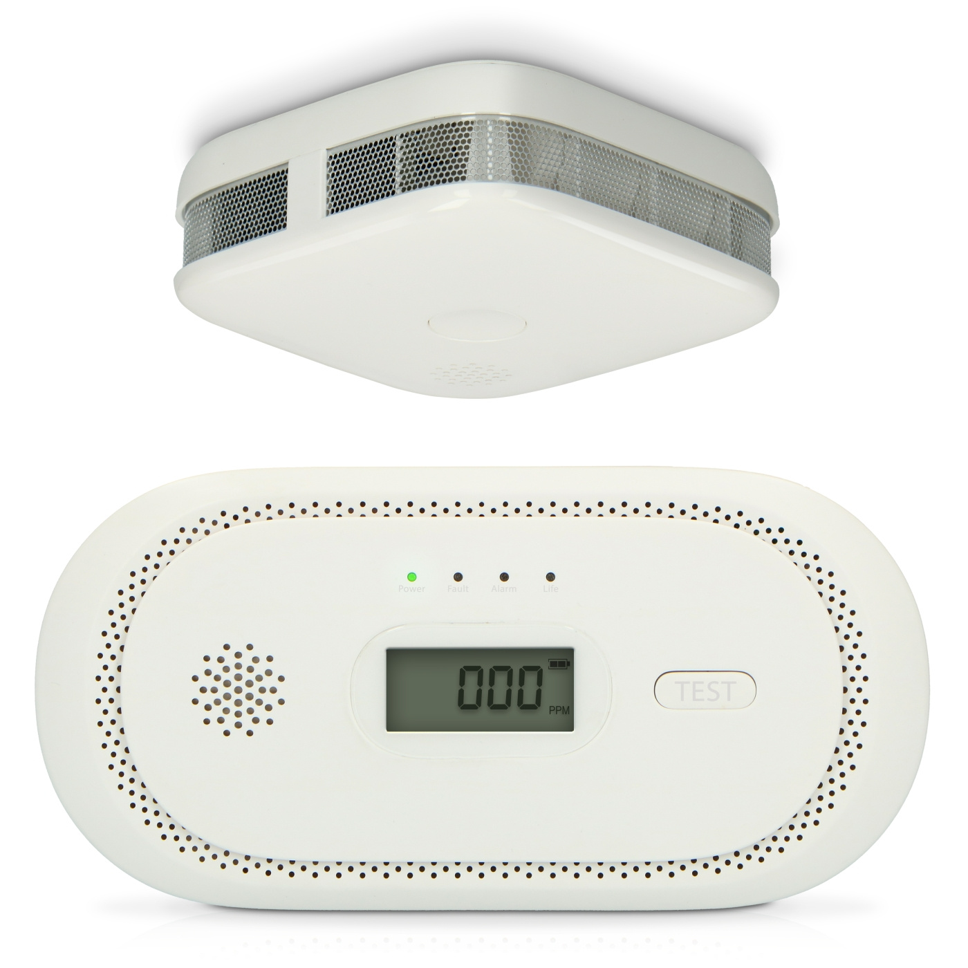Alecto SCA50 är ett set med en rökdetektor (SA50) och en kolmonoxidvarnare (COA2650) för optimal säkerhet i hemmet. Kolmonoxidvarnaren ger en snabb varning vid förekomst av kolmonoxid. Rökvarnaren varnar snabbt för rök och brand. Båda larmen avges med en ljudnivå på >85dB.