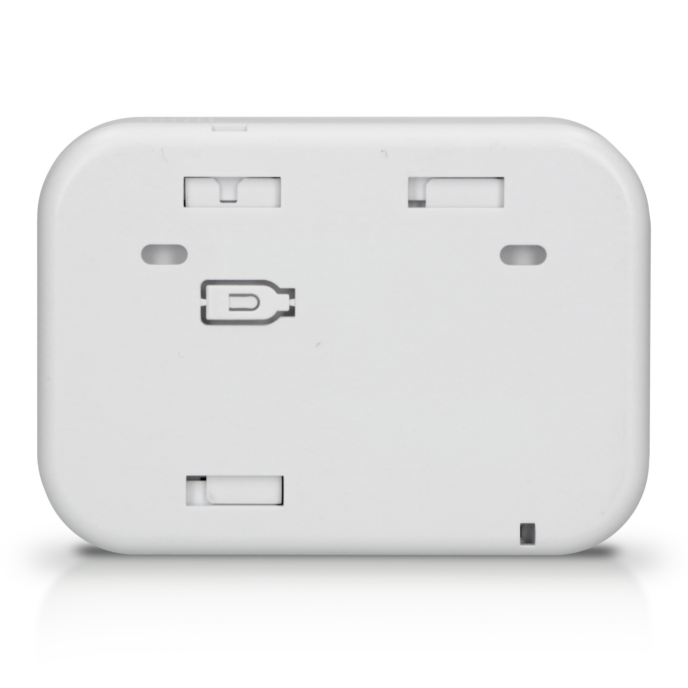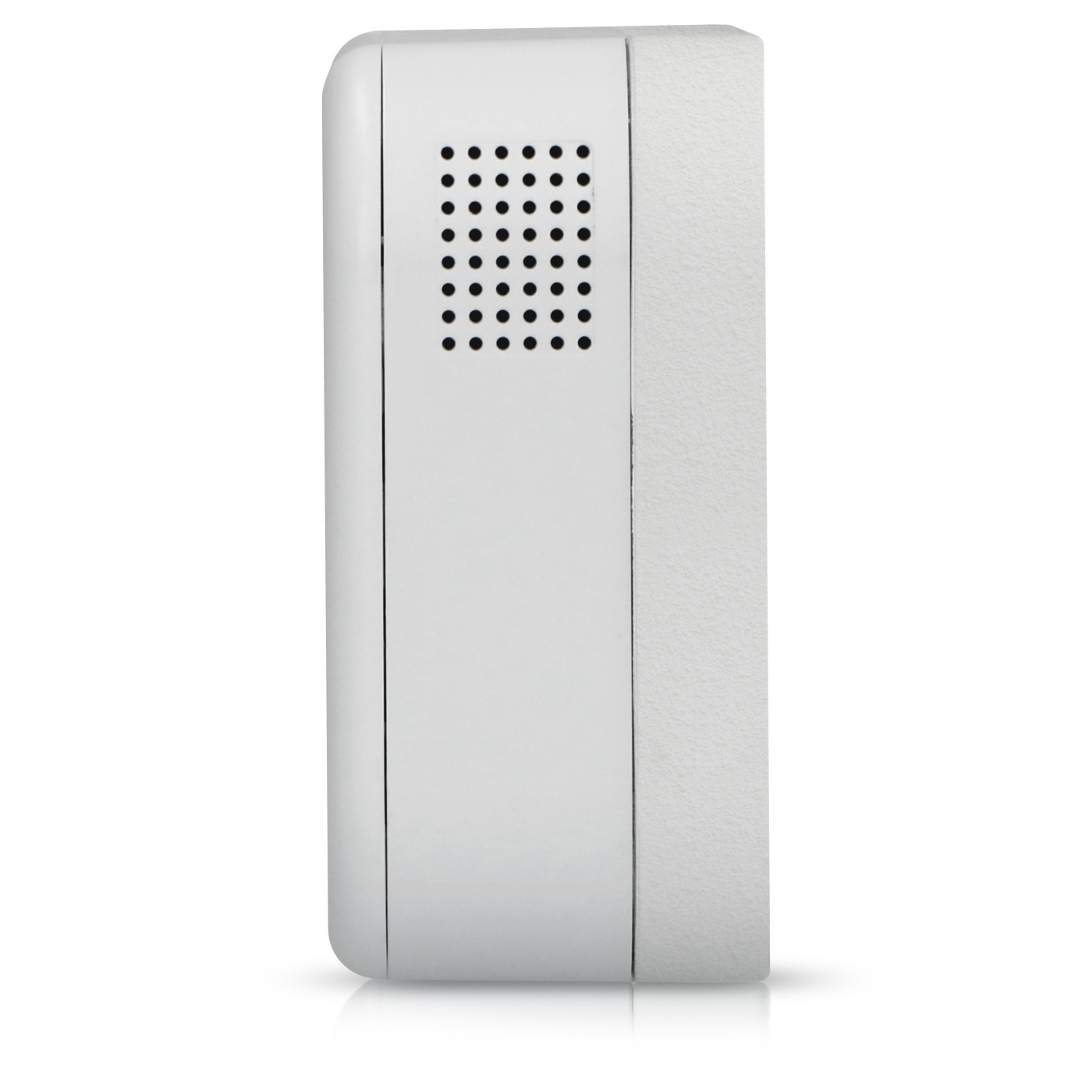 COA3910 har en modern, diskret design med ett stucco-texturerat hölje som smälter sömlöst in i alla interiörer. Den är kompakt och lätt, lämplig för både väggmontering och fristående användning. Installationen är snabb och enkel tack vare den medföljande monteringsplattan, skruvarna och pluggarna, och larmet är redo att användas omedelbart med de tre medföljande AA-batterierna.