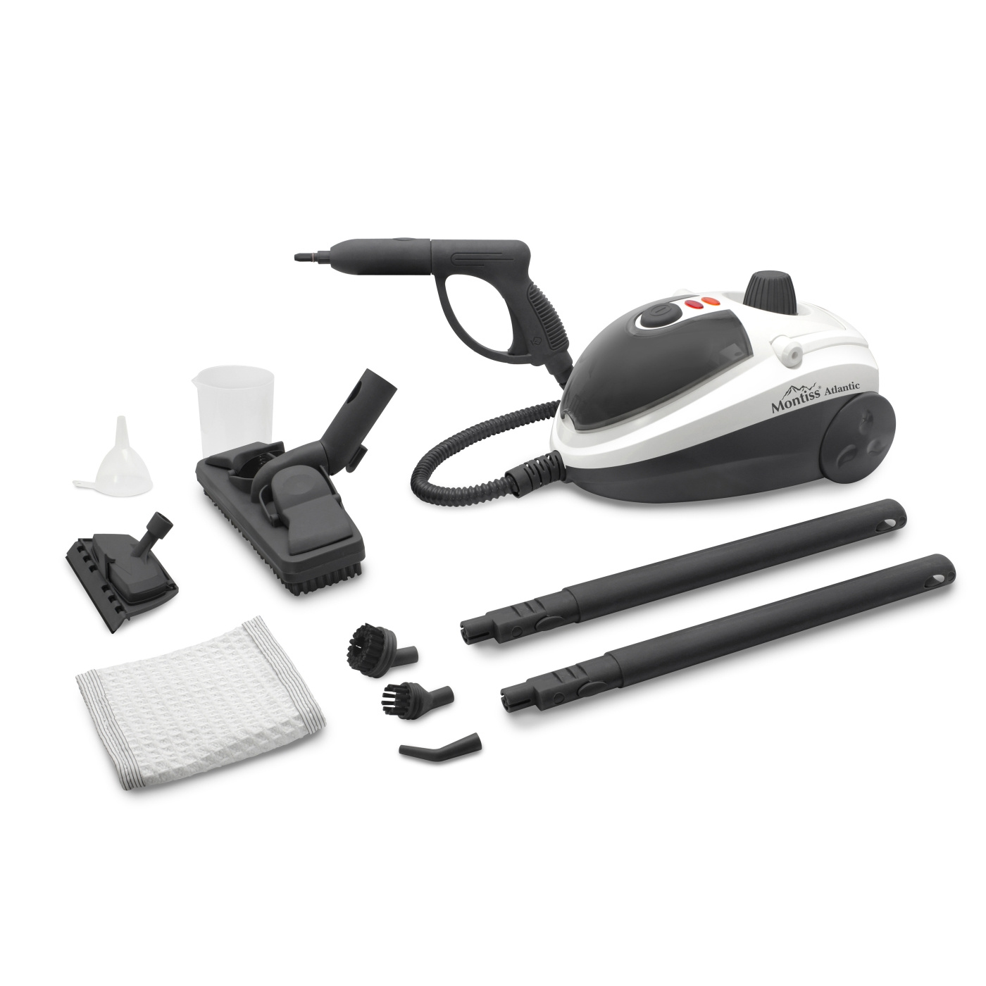 Med Montiss multifunktionella ångrengörare CSC811 i ditt hem behöver du aldrig skrubba och moppa igen. Du kan rengöra alla typer av golv enkelt och framför allt noggrant med den här ångrengöraren. Dessutom behöver du inga aggressiva rengöringsmedel, du använder bara vatten. Montiss ångtvätt är idealisk för rengöring och desinficering av hela huset. Ångtvätten har en pannkapacitet på 1200 ml och är lätt att fylla på tack vare skruvkorken på toppen. Ångtvätten är klassad för ett maximalt tryck på 4 bar. Perfekt för rengöring av badrum och toaletter, fönster, kök och klädsel. Den generösa 5 meter långa nätsladden gör att du kan röra dig fritt och rengöra stora områden på en gång. Montiss multifunktionella ångrengörare CSC811 levereras med 11 tillbehör så att du kan börja arbeta omedelbart. Förvaringsfacket för de olika tillbehören är placerat högst upp, så att du alltid har dem till hands. Ångtvätten har indikatorknappar som informerar dig om när apparaten är klar att användas och när behållaren behöver fyllas på. Så du kommer inte att bli överraskad.