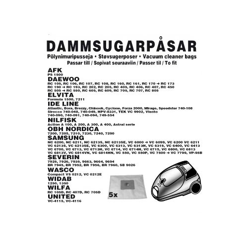 Svensktillverkade dammsugarpåsar i syntetfiber. Fiberpåsar filtrerar bättre än vanliga papperspåsar och behåller samma sugstyrka tills det att påsen är full.