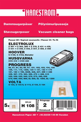 hanestroem Dammsugarpåsar Hanestrom Volta U 102. U 115. U154.U164