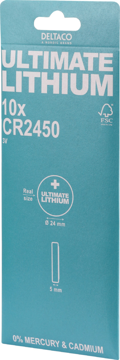 DELTACO Ultimate Lithium-batteri, 3V, CR2450 knappcell, 10-pack