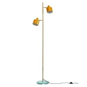 Denna lampa har en unik färgpalett som kombinerar curry, mässing och turkos, vilket skapar ett livligt men sofistikerat utseende. Den eleganta metallkonstruktionen garanterar inte bara hållbarhet utan ger också en modern touch till ditt vardagsrum, sovrum eller kontor. Den minimalistiska designen är tillräckligt mångsidig för att komplettera en mängd olika inredningsstilar, från modern till eklektisk.