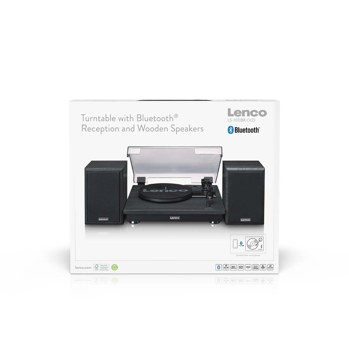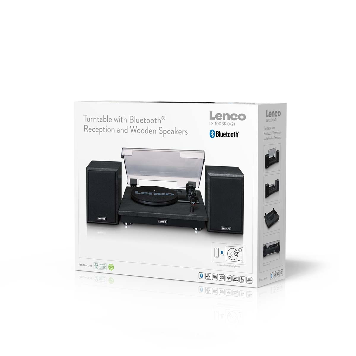 Förutom vinylskivor har LS-100 stöd för Bluetooth® 5.3-streaming, vilket gör att användarna kan spela musik trådlöst från smartphones eller surfplattor. AUX-ingången erbjuder ytterligare kompatibilitet med externa ljudkällor, vilket säkerställer bred användbarhet för dagens konsumenter.