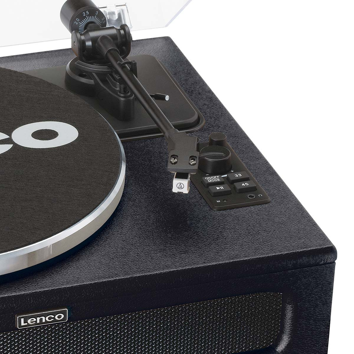 Dammskyddet i plast ser till att din skivspelare inte försvinner under ett lager av damm. Lenco LS-430 är försedd med en vacker läderimitation