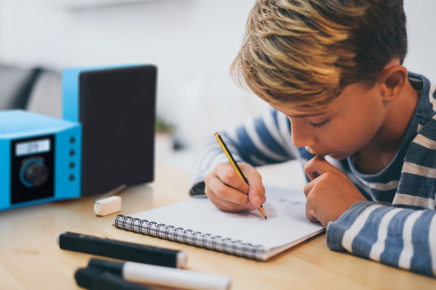 Lys upp barnrummet med det blåa micro-setet MC-013BU från Lenco. Den levereras med ett klistermärkesark, så att ditt barn kan dekorera enheten kreativt med klistermärken.
