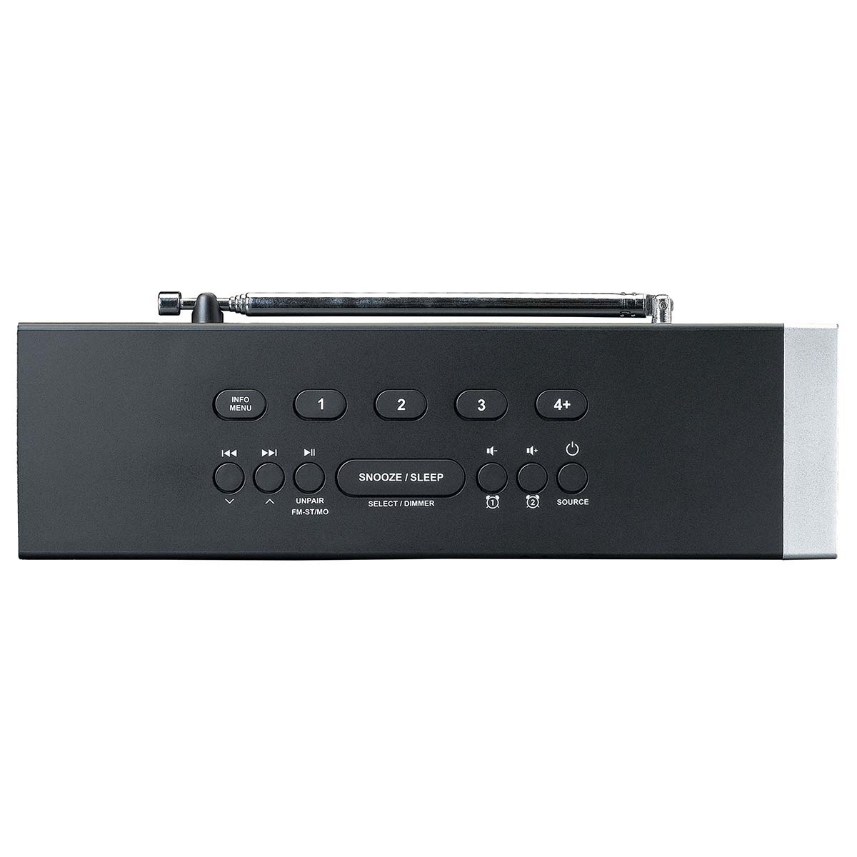 Trots att klockradion är kompakt har den en stor och välorganiserad 4,1 tums LED-skärm med vit bakgrundsbelysning. Så att du kan se vad klockan är även mitt i natten.