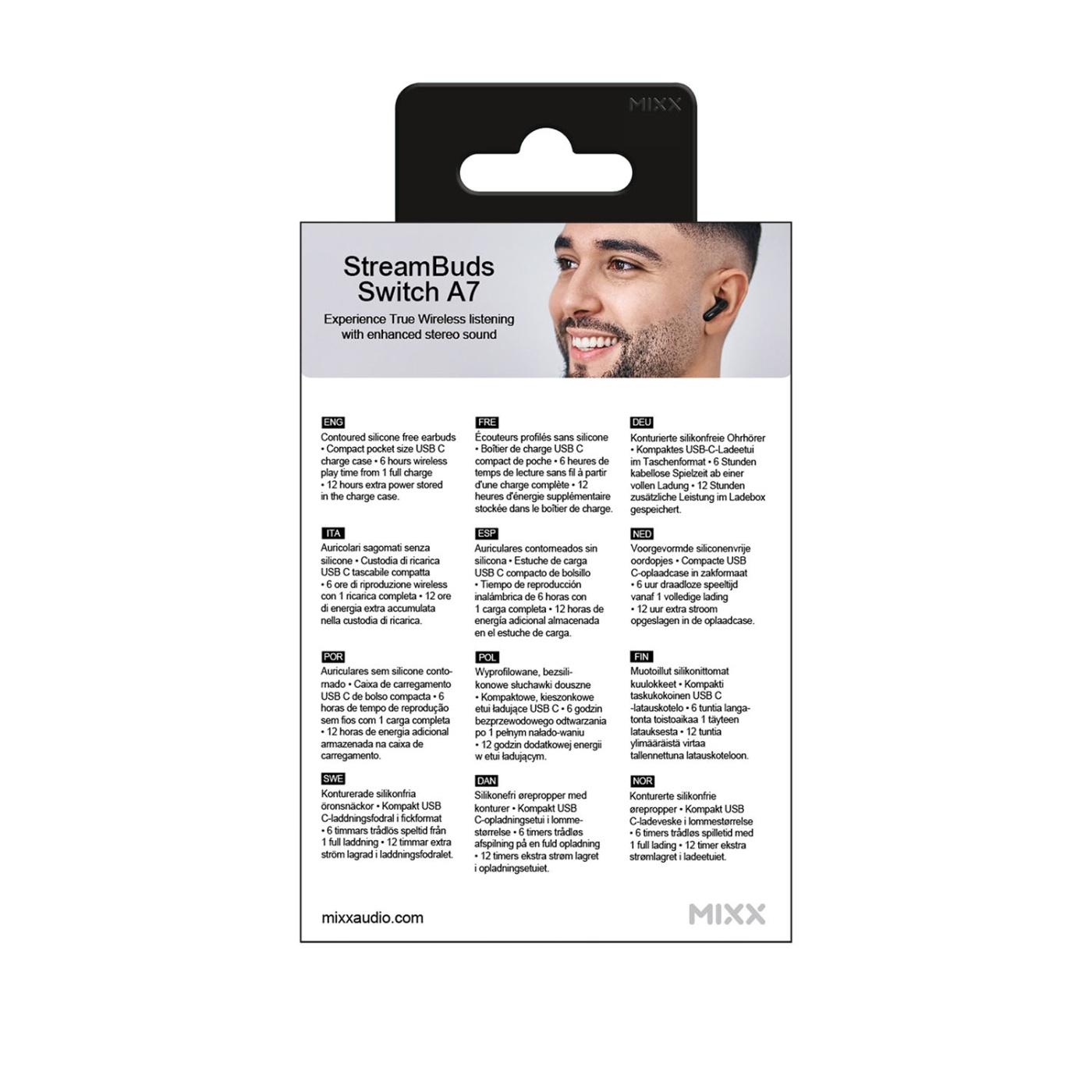 Njut av bekvämligheten med trådlöst ljud med Switch A7 In-Ear TWS-öronsnäckorna från MIXX. Dessa silikonfria true wireless-öronsnäckor är utformade för dem som föredrar en bekväm passform utan silikonspetsar, vilket gör dem idealiska för användare med känsliga öron. Den konturerade designen säkerställer att de sitter säkert och bekvämt i öronen.