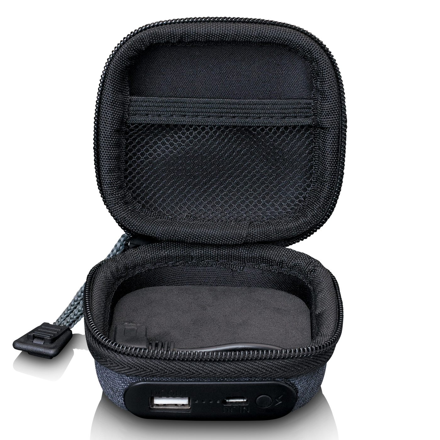 Men det här fodralet är mer än bara en portfölj för dina hörlurar, det är också en powerbank på samma gång. Ladda dina hörlurar via den mikro-USB-kabel som är kopplad till fodralet. Med hjälp av energistatusdisplayen vet du exakt hur mycket ström dina hörlurar fortfarande har.