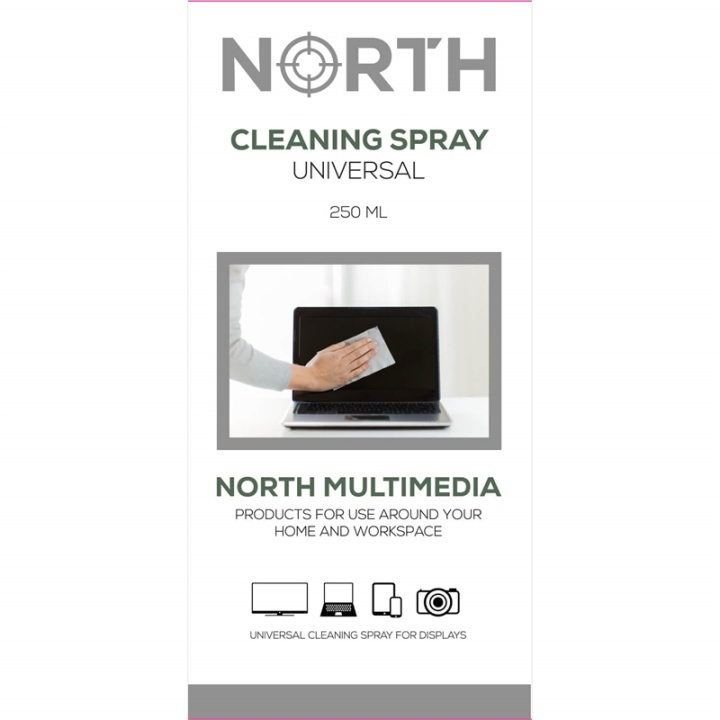 Består av en 250ml flaska rengöringsspray, och en tvättbar mikrofiberduk.