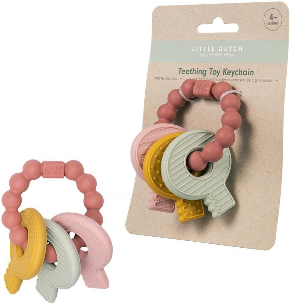 I Little Dutch Nycklar-tuggleksak finns det mycket att utforska för små händer! Nyckeltuggorna är i mjuka och behagliga färger samt har olika texturer på varje nyckel.