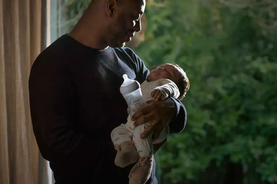 Natural Response-flasknappen följer barnets naturliga matningsrytm och gör det lättare att kombinera bröst- och flaskmatning. Flasknappen har en unik öppning som bara släpper ut mjölk när barnet dricker aktivt. Mjölken slutar komma in när barnet slutar dricka, vilket gör att barnet kan svälja och andas i lugn och ro. Den breda, mjuka och flexibla flasknappen har samma form och känsla som höger bröst, vilket gör den lättare för barnet att greppa. Flaskans antikolikventil hindrar luft från att komma in i barnets mage under matningen, vilket minskar kolik och magbesvär. Den ergonomiska flaskan är lätt att greppa från alla håll, vilket gör matningen så bekväm som möjligt. Flaskans breda hals gör den lätt att fylla på och rengöra.