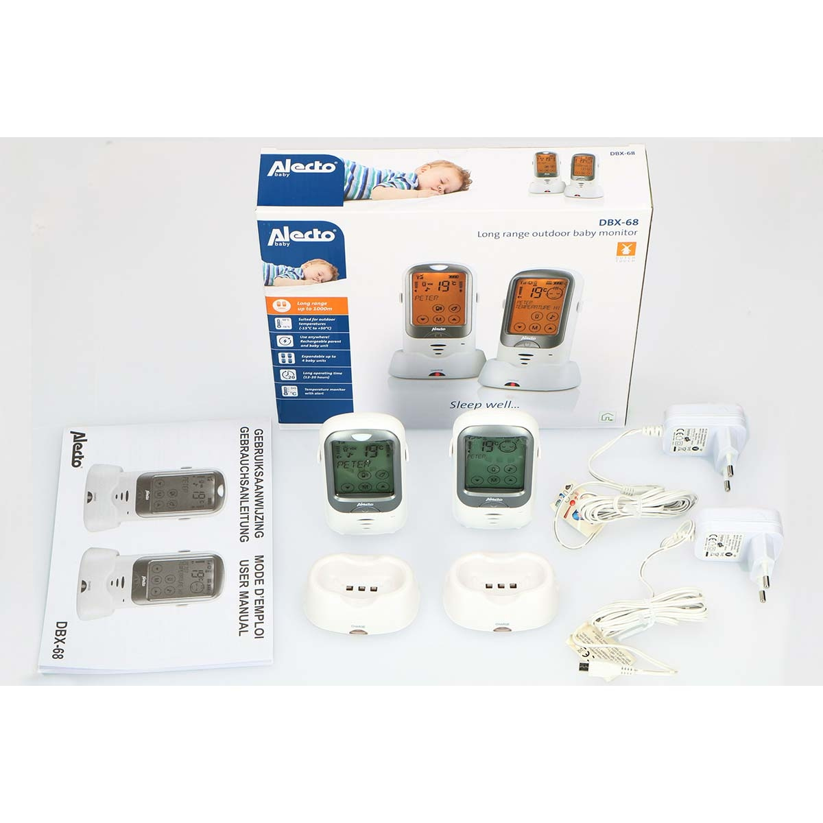 DBX-68 har ett uppladdningsbart batteri, inte bara i föräldraenheten utan även i babyenheten. Perfekt om du vill lämna barnvagnen utomhus när ditt barn sover för att njuta av den friska luften, eller om du är på campingresa. DBX-68 är din perfekta följeslagare.