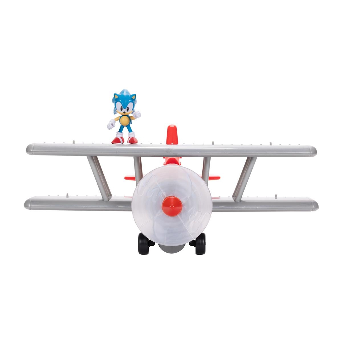 Flyg in i Sonics spännande värld med vårt Tornado Biplane-lekset! Aktivera klassisk Sonic-musik från videospel med en knapptryckning. Upplev dynamisk rörelse med en motoriserad snurrande propeller och en upplyst flamma, var och en med tillhörande ljudeffekter. Det finns även flygljud när planet svänger åt vänster och höger, och fritt rörliga hjul för att öka autenticiteten. Det finns 6 ljudeffekter som kan integreras i leken! Tornado Biplane innehåller en 2,5-tums Sonic-figur och vingarna har pinnar för att fästa ytterligare figurer för oändliga kreativa lekmöjligheter. Levereras till dig av JAKKS Pacific.