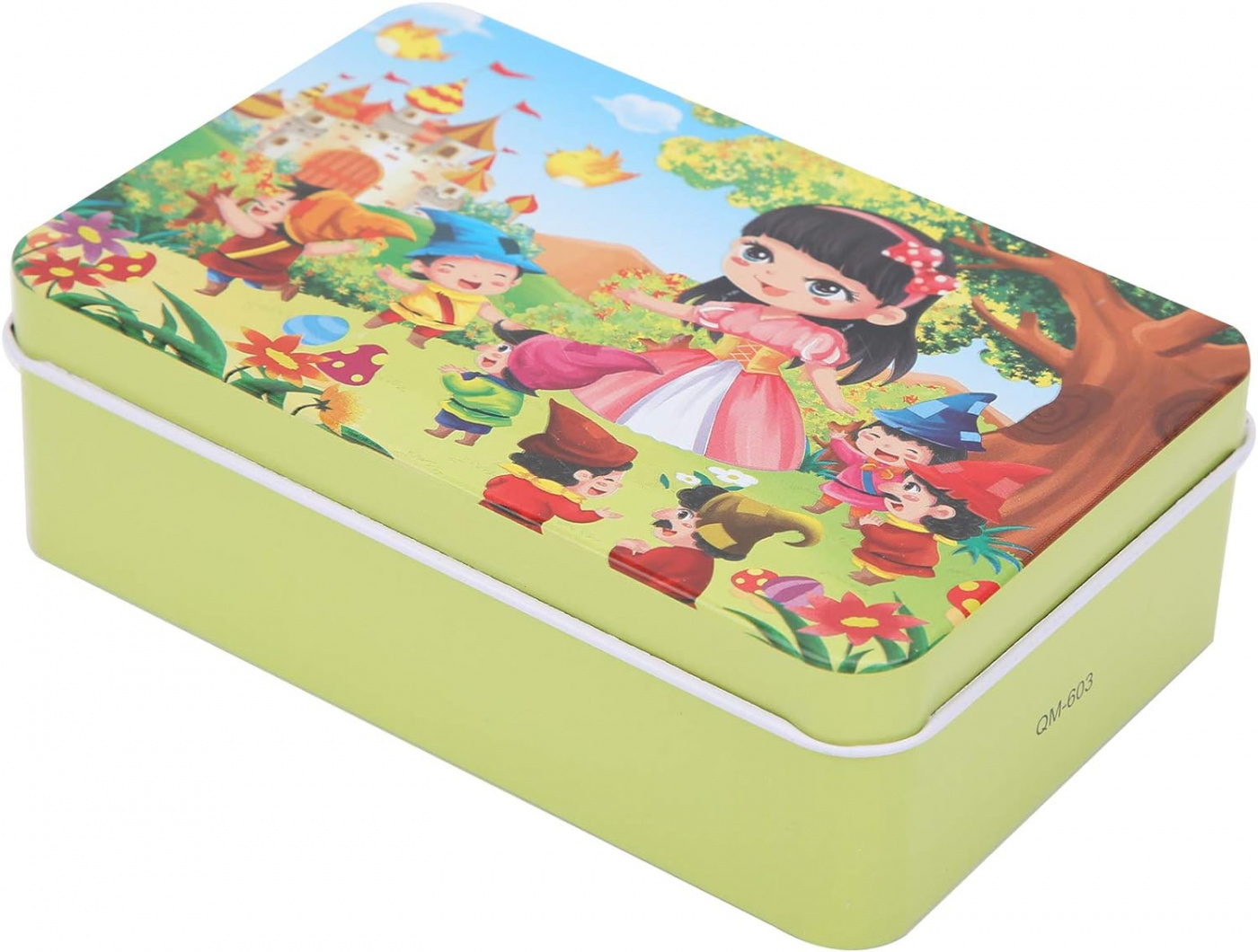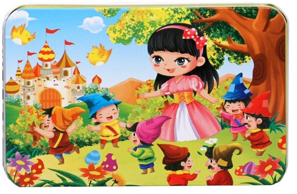 60 bitars pussel med sago-motiv. Utmanande och roligt pussel för barnen. Pusslet kommer i en liten metallåda som gör förvaringen enklare.