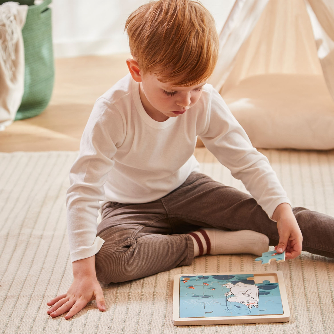 Det här 16-delars träpusslet har en mysig och robust design med ett sött motiv av Mumin som hoppar i sin säng. Det ger många timmars engagerande lek och utveckling för små barn. När de sätter ihop pusslet förbättrar barnen sin visuella uppfattning och finmotorik, vilket gör det till ett utmärkt utvecklingsverktyg. Passar barn från 2 år och uppåt och är ett underbart sätt att kombinera lek och lärande.
