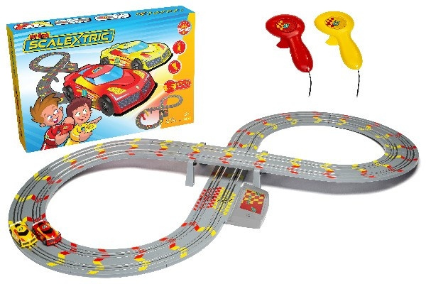 En fantastisk introduktion till Scalextric-världen med en lättmonterad åtta-formad bana. Detta set är den idealiska utgångspunkten för yngre förare i åldern 3+. De två sci-fi-bilarna och justerbara handkontrollerna är färgkodade i rött och gult för att matcha vinklar på kretsen. Denna uppsättning är batteridriven.