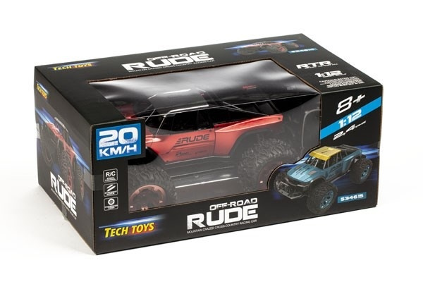 Supercool 1:12 terrängbil från TechToys. Bilen har den senaste typen av fjärrkontroll, 2,4 GHz, terrängdäck som ger maximalt grepp, och sist men inte minst, en toppfart på hela 20 km/h.