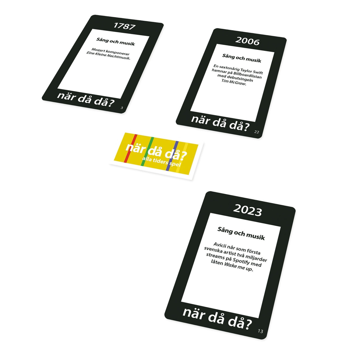 Utmana ditt minne och dina historiska kunskaper med det här spelet i fickformat. Spelarna turas om att dra kort och skapa en tidslinje med fem olika händelser från tidernas begynnelse till idag. Målet är att placera korten i rätt kronologisk ordning utan att behöva veta de exakta årtalen. Du kan välja att ta risker genom att försöka vinna flera kort på en gång, eller ta det säkra före det osäkra och vinna ett kort i taget. Den första spelaren som placerar fem kort korrekt vinner spelet. Spelet är utformat för 2 eller fler spelare och passar från 12 år och uppåt, vilket gör det till en rolig och lärorik aktivitet för familj och vänner.
