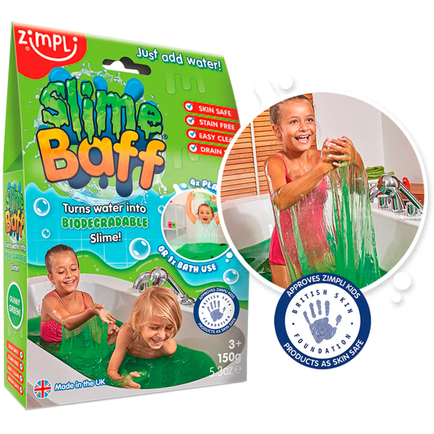 Slime Baff från Zimpli Kids är den perfekta produkten för kladdig och multisensorisk lek! Alla våra Slime Baff är certifierat biologiskt nedbrytbara, snälla mot huden, orsakar inte stopp i avloppet, lätta att rengöra samt ger inga fläckar.