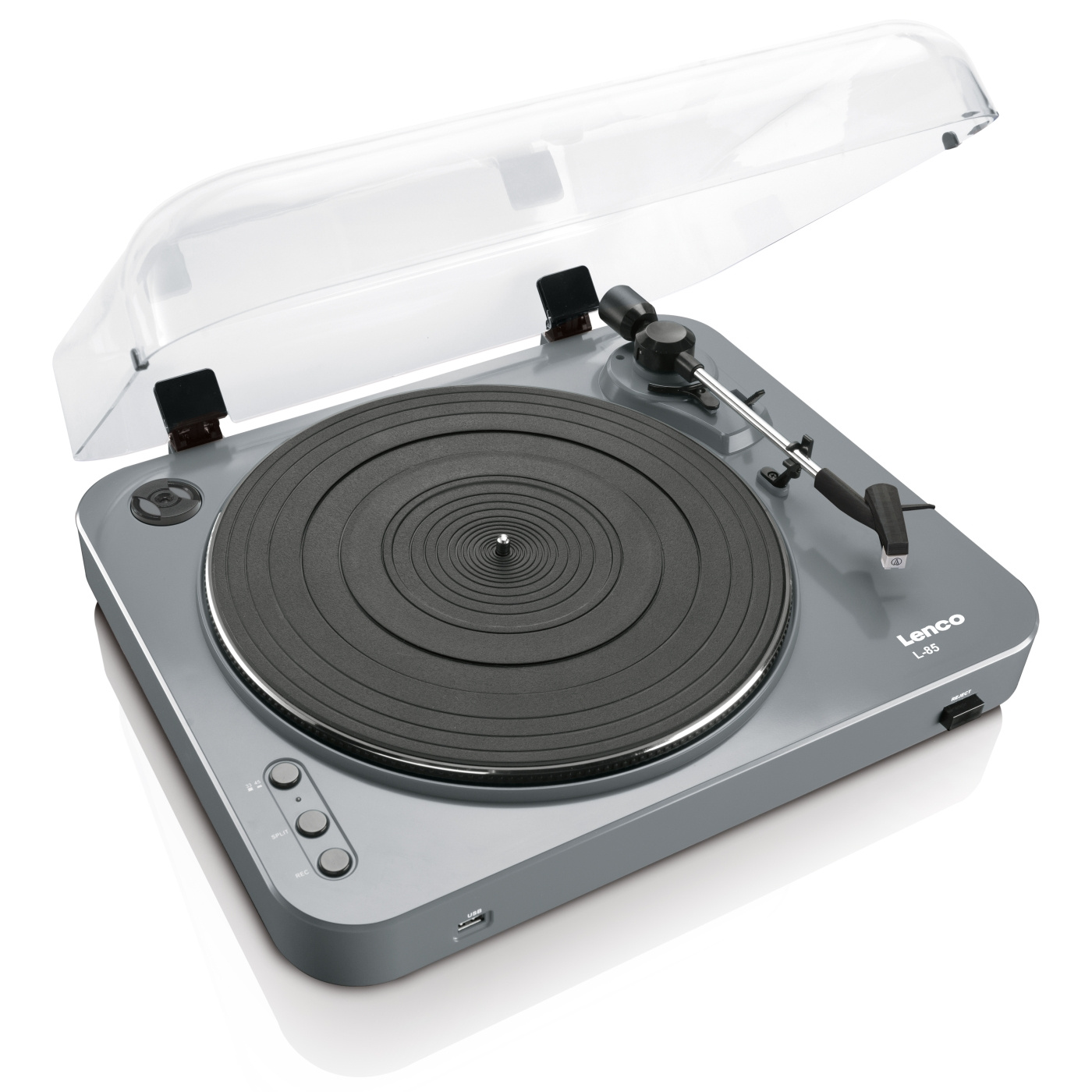 Lenco L-85 är utrustad med en mekanisk armlyft, MMC-nål och en inbyggd förförstärkare. Du kan spela i två hastigheter: 33 RPM och 45 RPM. Med det avtagbara plasthöljet förblir skivspelaren alltid dammfri.