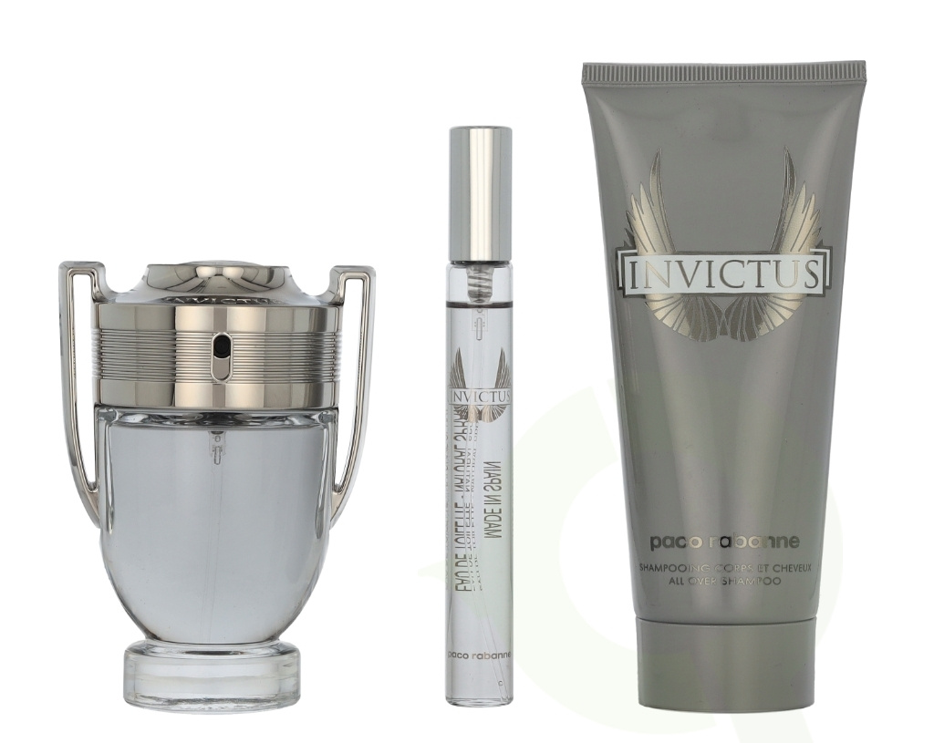 Paco Rabanne Invictus Giftset 160 ml Edt Spray 50ml/All Over Shampoo 100ml/Edt Travel Spray 10ml