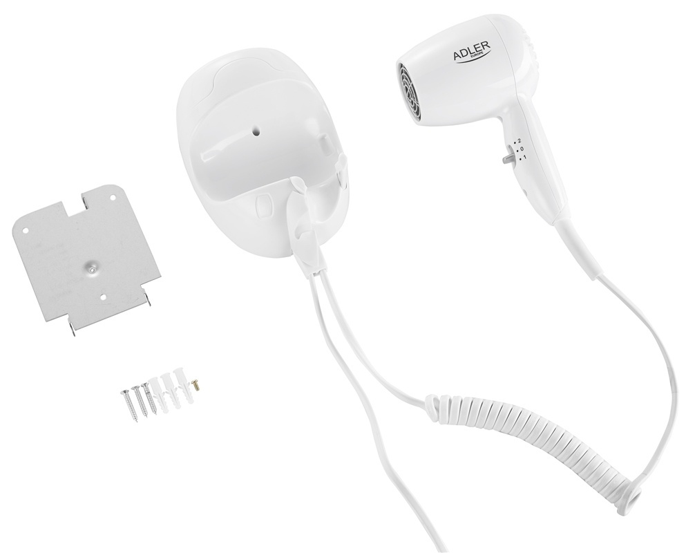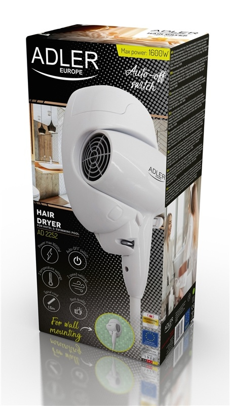 AD2252 Hårtork med väggfäste är en lösning för fritidsindustrin. Enheten är utrustad med en automatisk avstängning efter att torken har satts i basen på väggen. Det avtagbara luftfiltret förenklar rengöringen och förlänger enhetens livslängd. Bekväm användning garanteras av en spiralkabel som sträcker sig upp till 1,60 m. Väggmonteringssats ingår.