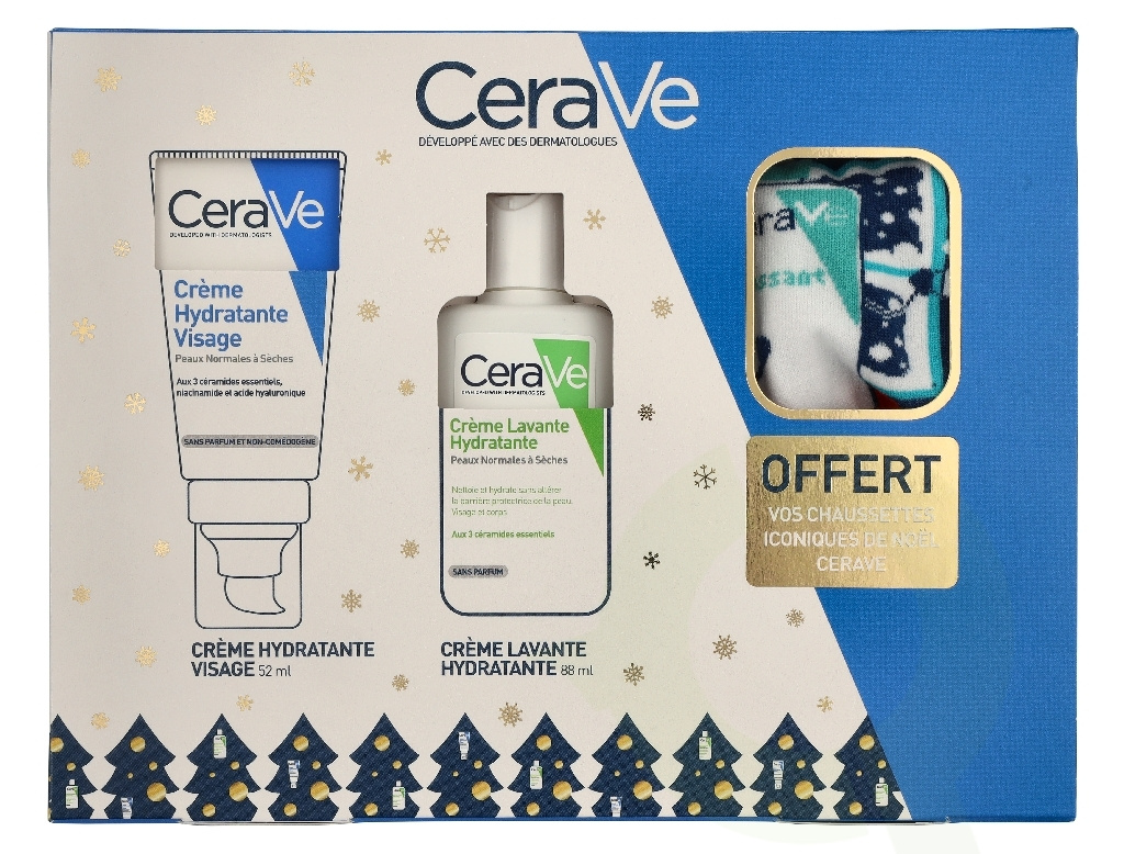 Cerave Christmas Box Giftset 140 ml Cream 52ml/Cleansing Cream 88ml/ Free Sock