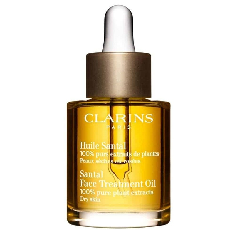 Clarins Santal Treatment Oil ger en lugnande lättnad för torr eller extra torr hud och är gjord på 100% ren växtextrakt. Clarins eteriska oljor av sandelträ, kardemumma och lavendel, lugnar, lättar och avlägsnar hud som är torr, irriterad eller stressad. Hasselnötsolja mjukar, jämnar ut och minskar rodnad. Hjälper till att förhindra fuktförlust och bildning av fina linjer.